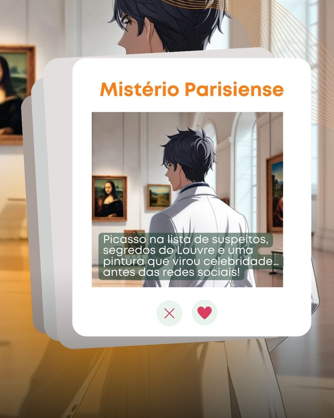 Seu último livro te deu ghosting? Cansado de perfis literários que só recomendam os mesmos títulos? Pas de problème! “O Sumiço da Mona Lisa” está aqui para um rendez-vous repleto de suspense, fofocas do século XX e um Picasso que (talvez) seja mais do que apenas um pintor… 🎨❤️